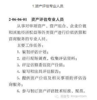 經(jīng)與《中華人民共和國職業(yè)分類大典》(征求意見稿)相比較,正式版《職業(yè)分類大典》評(píng)估專業(yè)人員由原來的4個(gè)細(xì)類(職業(yè))增加了一項(xiàng),即為資產(chǎn)評(píng)估專業(yè)人員。據(jù)悉,這與中評(píng)協(xié)、財(cái)政部與人社部等單位組成的國家職業(yè)大典修訂平臺(tái)溝通協(xié)調(diào)有很大關(guān)系,并最終實(shí)現(xiàn)將“資產(chǎn)評(píng)估專業(yè)人員”作為一項(xiàng)職業(yè)寫入國家頒布的新版職業(yè)分類大典中。