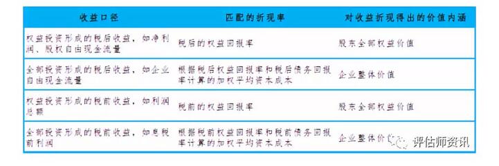 折現(xiàn)率是將未來預(yù)期收益折算成現(xiàn)值的比率,是與企業(yè)未來收益風(fēng)險程度相對應(yīng)的期望報酬率,折現(xiàn)率的選取需與相應(yīng)收益的口徑相匹配。