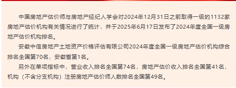 喜報丨我公司在2024年度房地產(chǎn)評估行業(yè)排名中取得佳績