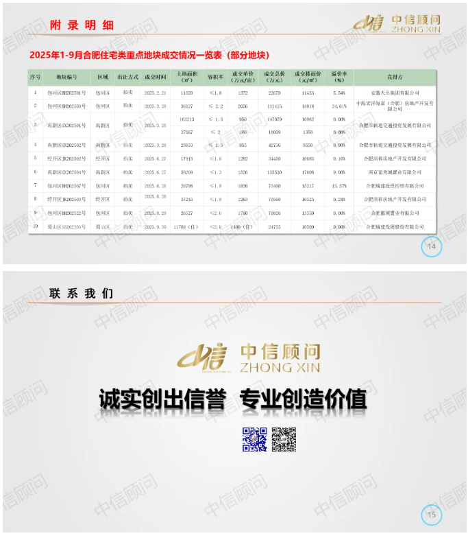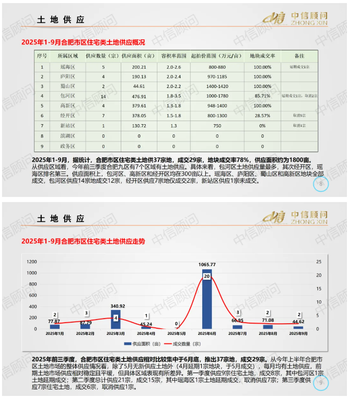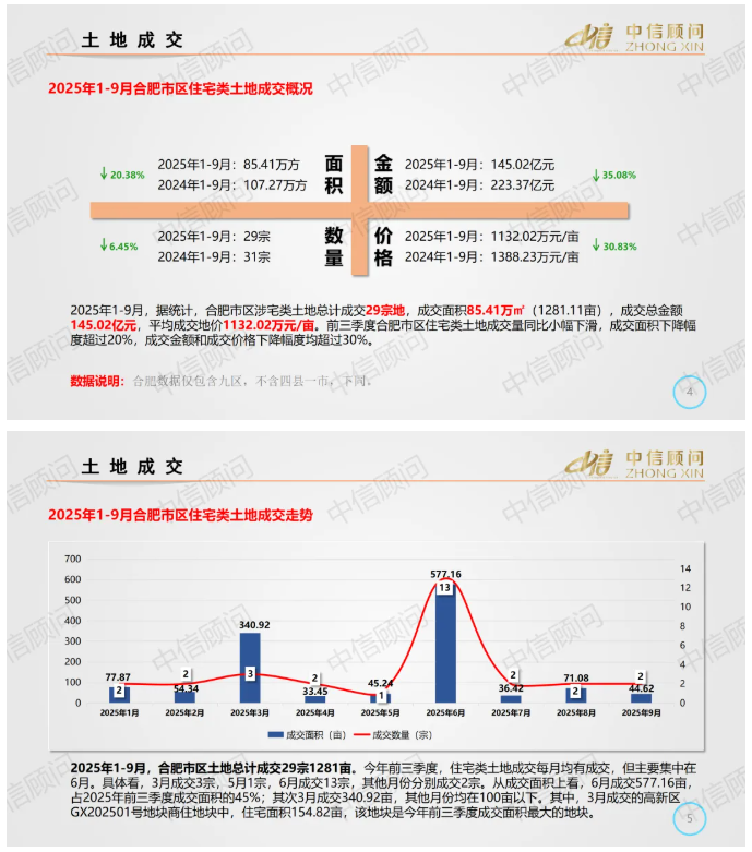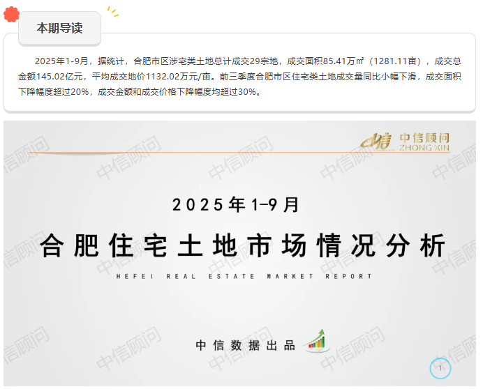 土地市場 | 2025年1-9月,合肥住宅用地成交29宗1181畝,平均地價1132萬元/畝